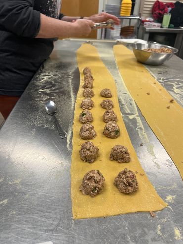 Handmade pasta sheet class, then formed into various shaped and sizes of Ravioli.
